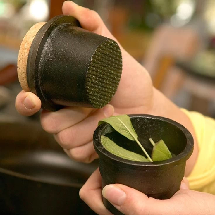 Broyer des feuilles de menthe, de laurier et autres et tout à fait possible