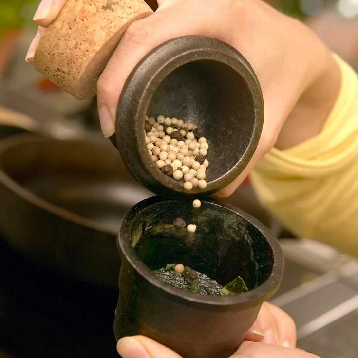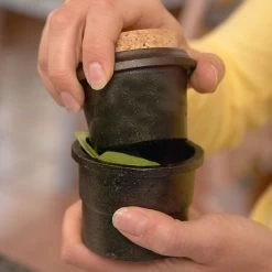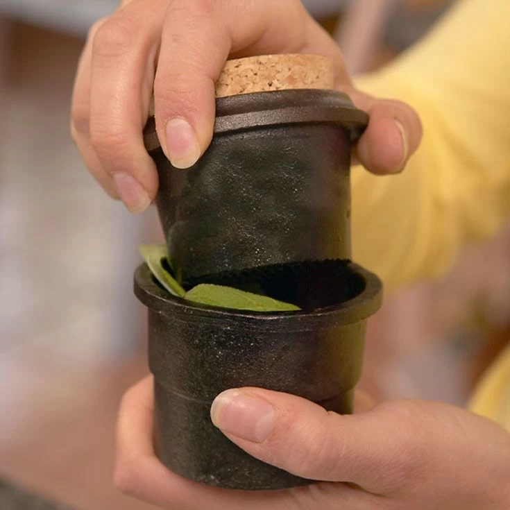 Les dents se frottent les unes contre les autres, et rien ne leur résiste. Le surplus de vos aliments broyés peut être mis dans le récipient supérieur protégé par un bouchon en liège. Attention toutefois à ne pas insérer des aliments trop gras pour ne pas colmater les dents, veillez à utiliser des épices sèches pour obtenir une farine et non pas une pate.