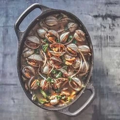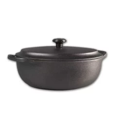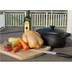 Vous pourrez y prĂ©parer une grosse volaille avec ses lĂ©gumes, comme une vraie cocotte d’autrefois, sans aucun produit chimique, ni PTFE ou PFOA. Uniquement de la fonte de fer avec de l’huile bio pour assurer la protection contre la corrosion.