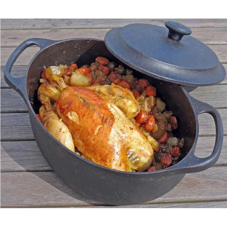 Grand modĂšle de cocotte en fonte ovale 6 litres.