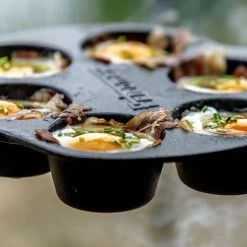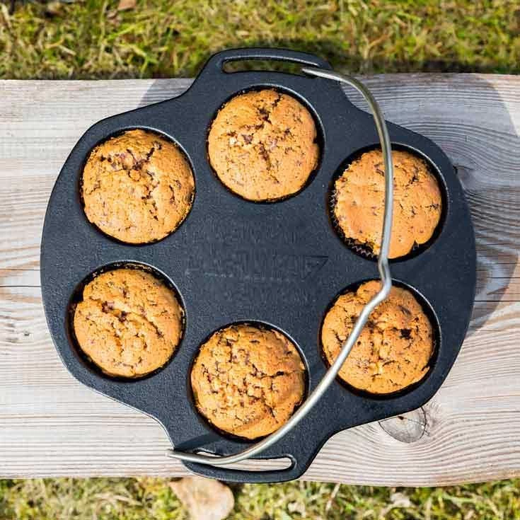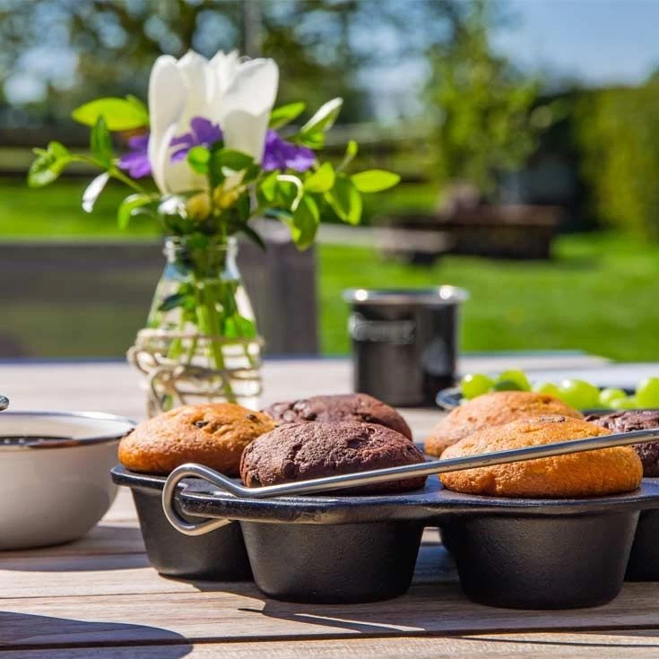 Ce moule à muffins en fonte brute est un objet extraordinairement joli et très bien fini. La qualité du moulage de la fonte est exceptionnelle. Grâce à ses 6 moules profonds, la chaleur se diffuse de façon homogène et laisse une cuisson saine et onctueuse.