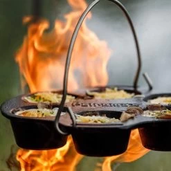 Cet moule à muffins ne fonctionne que sur le gaz ou sur flamme de barbecue, les braises ou le four, une anse peut être utile pour le suspendre.