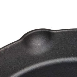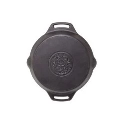 Ce modèle de plat en fonte existe également en poêle, avec une poignée.