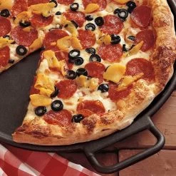Grâce à ses 2 anses vous pourrez le déplacer facilement, ou même pour le sortir du four. L’avantage de cette plaque en fonte sans rebord, la crôute sera bien croustillante sur les bordures de votre pizza.