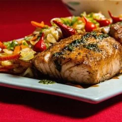Saumon grillé : Coupez des filets de saumon en portions individuelles et badigeonnez-les d’huile d’olive. Faites-les griller sur la plancha chaude pendant environ 6 minutes de chaque côté. Servez avec une salade verte et une sauce à l’aneth.