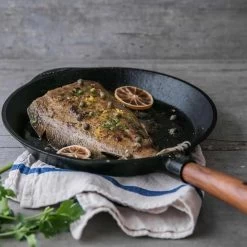 Poêle de cuisine indispensable dans une cuisine pour toutes les cuissons saisies, ou pour cuire des omelettes, des pommes de terre, viande ou poisson. Son diamètre de 24 cm permet une cuisson pour 2 à 3 personnes. Sans revêtement, sa fabrication est écologique. C’est une poêle durable, robuste et terriblement efficace.