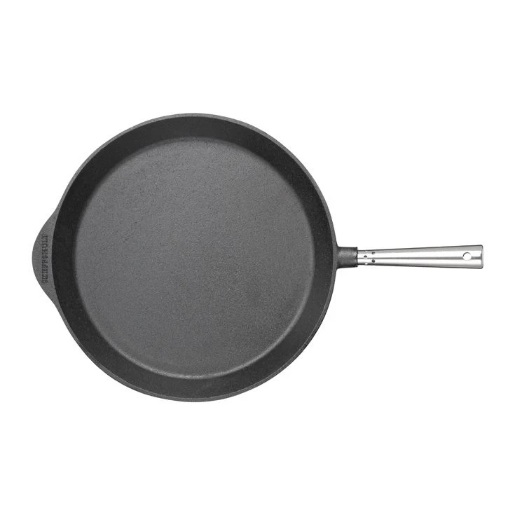 Grâce à ses bords inclinés, elle permet de faire sauter, cuire ou saisir à point viandes ou légumes avec une grande facilité. Sa grande taille est vraiment parfaite pour y faire tous types de préparations. Des omelettes, de la viande, du poisson, des grandes crêpes ou galettes
