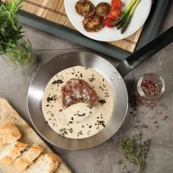 Cette poêle à frire grand modèle en tôle 32 cm ressemble à un grand plat à paëlla.