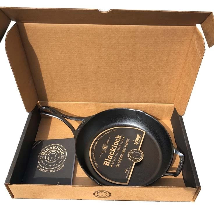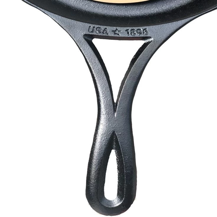 Voici la poêle en fonte Blacklock, une série spéciale fabriquée aux USA. Une poêle vraiment légère comparée à toutes les autres. Il n’y a pas d’aluminium, il s’agit bien de fonte brute, mais le fabricant a réussi à concevoir une fonte légère grâce à la proportion de ses matéuriaux judicieusement dosés dont le fabricant à le secret. La forme de cette poêle fait aussi partie du concept ingénieux, avec ses 2 becs verseurs qui assurent une rigidité au moment de la chauffe. Elle sera plus facile à manipuler que toutes les autres poêles en fonte.