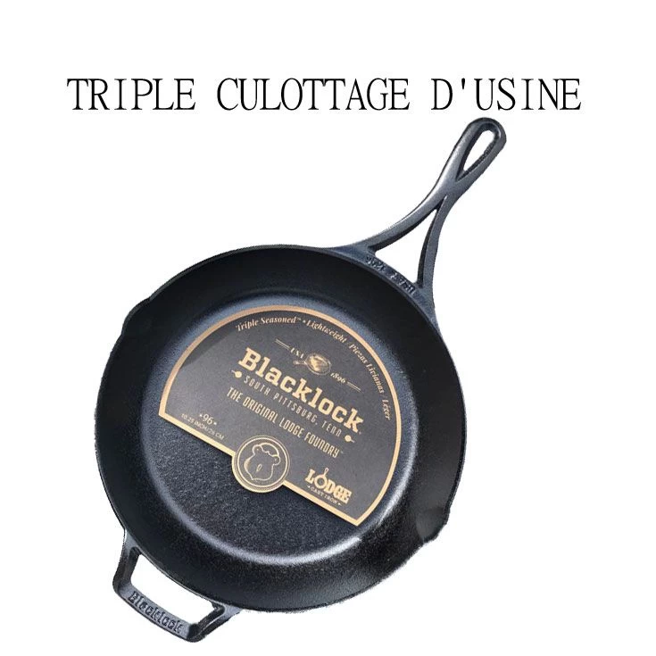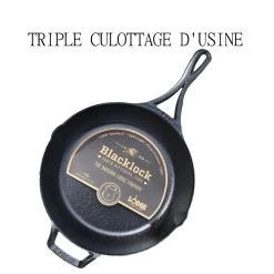 Son autre particularité est que cette poêle BlackLock a subi un triple culottage à base d’huile de soja pour vous faciliter la vie, donc moins d’entretien lors du démarrage et la possibilité de cuisiner des liquides plus rapidement. Elle se patinera plus facilement.