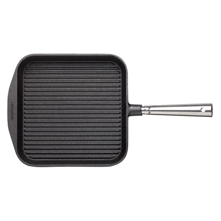 Poele grill ou poêle à grillade pour une cuisine barbecue. En toute saison, dégustez viandes et poissons grillés. Grâce à ses stries au fond de la poêle, vous réaliserez sur vos pièces à cuire les mêmes traces que celles d’un barbecue. La forme des stries à été spécialement conçue pour éviter qu’au moment de la cuisson, les aliments ne soient en contact avec le jus.