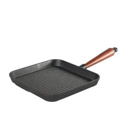 Ses stries au fond de la poêle vous permettent de réaliserer sur vos pièces à cuire les mêmes traces que celles d’un barbecue. L’angle des stries a été spécialement conçue pour éviter qu’au moment de la cuisson, les aliments ne soient en contact avec le jus, voir photo ci-jointe. La fonte d’acier Skeppshult est une excellente conductrice de chaleur, et vous réaliserez des grillades comme de grands chefs.