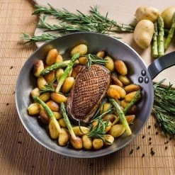 La poêle en fer Debuyer est utilisée dans le monde entier par les plus grands cuisiniers. De qualité professionnelle, elle sera en votre compagnie durant toute votre vie. Elle est protégée avec de la cire d’abeille 100% naturelle.