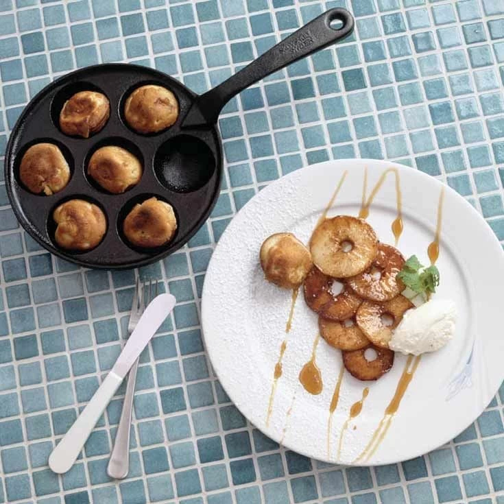 La poignĂ©e de cette poĂȘle « dumpling » est en fonte pour pouvoir l’utiliser en plus de votre plaque traditionnelle, cuire dans le four. Il est donc important d’avoir un gant, une manique ou utiliser la housse prĂ©vue Ă cet effet.